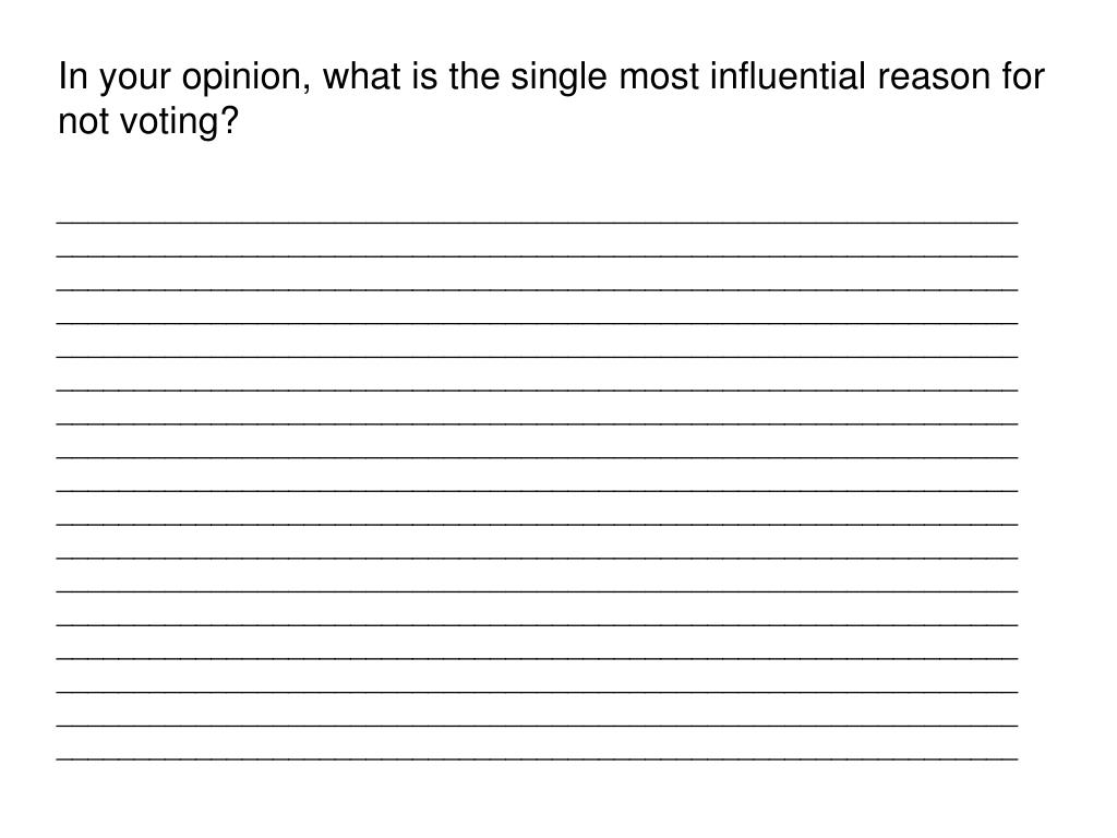 In your opinion, what is the single most influential reason for not voting? ______________________________________________________________________________________________________________________________________________________________________________________________________________________________________________________________________________________________________________________________________________________________________________________________________________________________________________________________________________________________________________________________________________________________________________________________________________________________________________________________________________________________________________________________________________________________________________________________________________________________________________________________________________________________________________________________________________________________________________________________________________________________________________________________________________________________