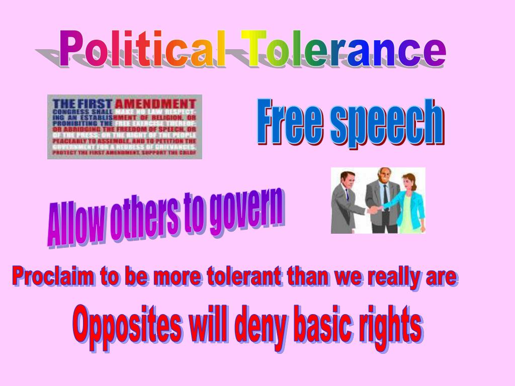 Political Tolerance Free speech Allow others to govern Proclaim to be more tolerant than we really are Opposites will deny basic rights