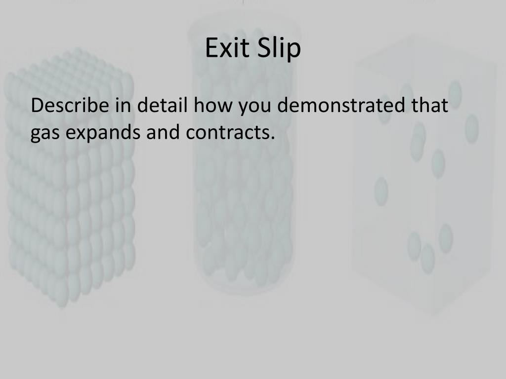Exit Slip Describe in detail how you demonstrated that gas expands and contracts.