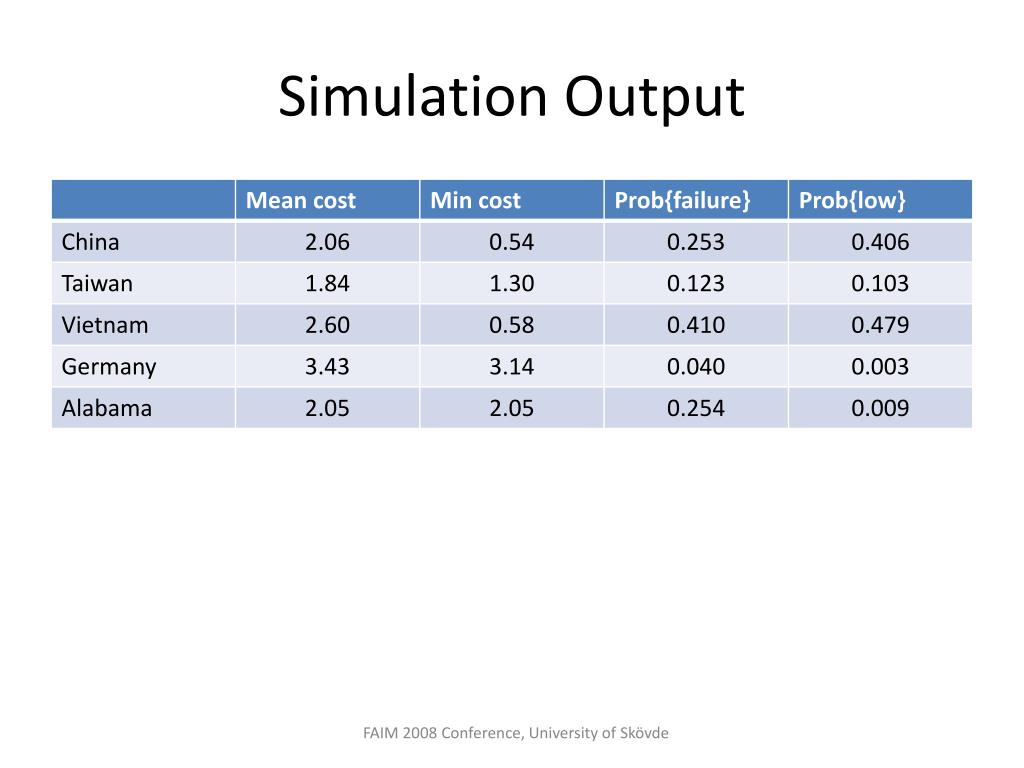 Simulation Output FAIM 2008 Conference, University of Skövde