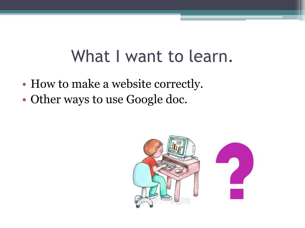What I want to learn. • How to make a website correctly. • Other ways to use Google doc.