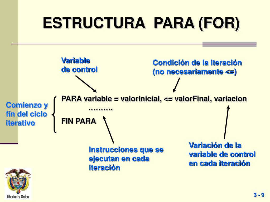 ESTRUCTURA PARA (FOR) Variable de control Condición de la iteración (no necesariamente <=) PARA variable = valorInicial, <= valorFinal, variacion ………. FIN PARA Comienzo y fín del ciclo iterativo Variación de la variable de control en cada iteración Instrucciones que se ejecutan en cada iteración 3 - 9