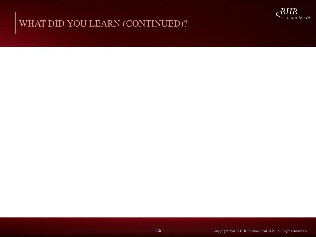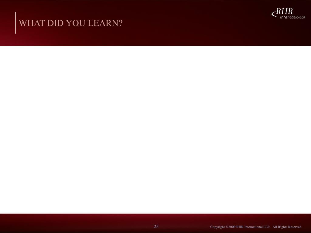 What makes for good Feedback? • Feedback should be balanced. • The intent must be help create behavioral change targeted toward a strategic organizational need. • It must be synthesized and focused on a core issue. • Trust has to dominate the experience. • You have to listen without judging