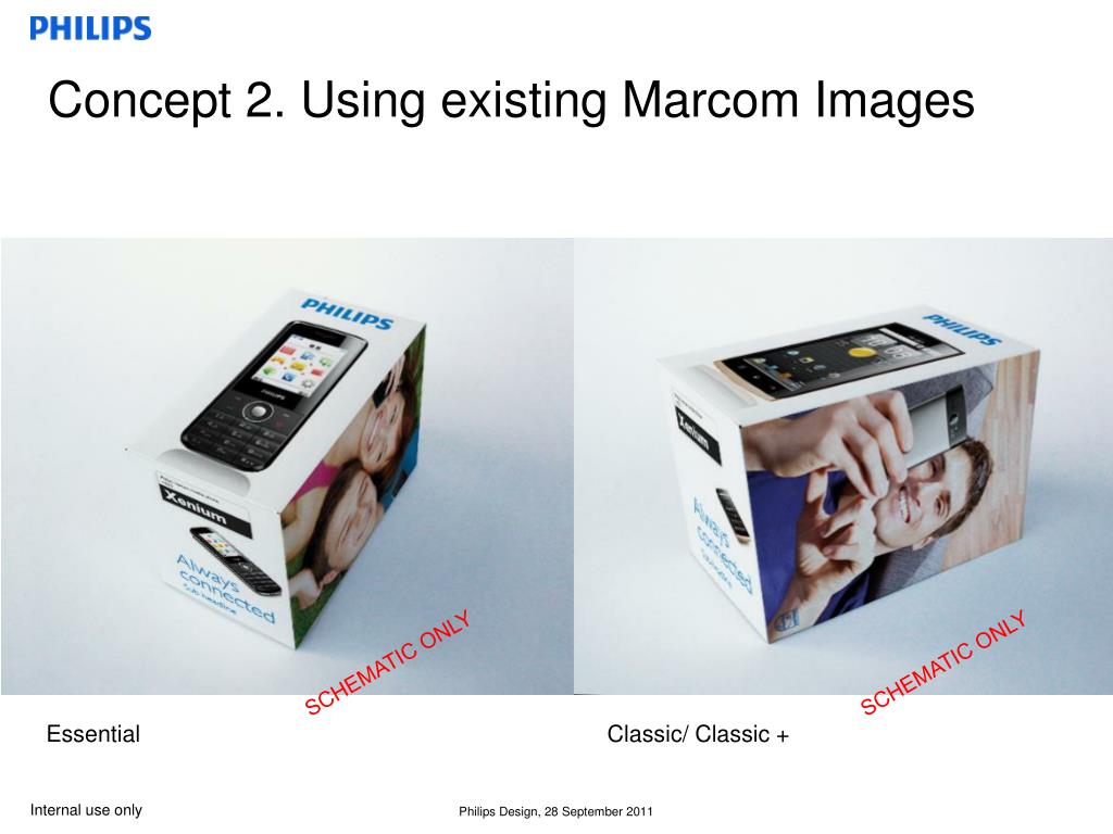 Concept 2. Using existing Marcom Images SCHEMATIC ONLY SCHEMATIC ONLY Essential Classic/ Classic +