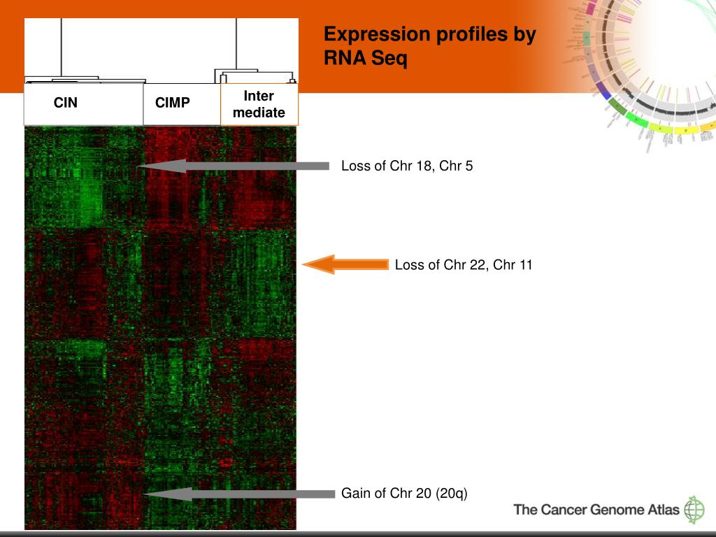Loss of Chr 18, Chr 5 Loss of Chr 22, Chr 11 Gain of Chr 20 (20q) Expression profiles by RNA Seq Inter mediate CIN CIMP