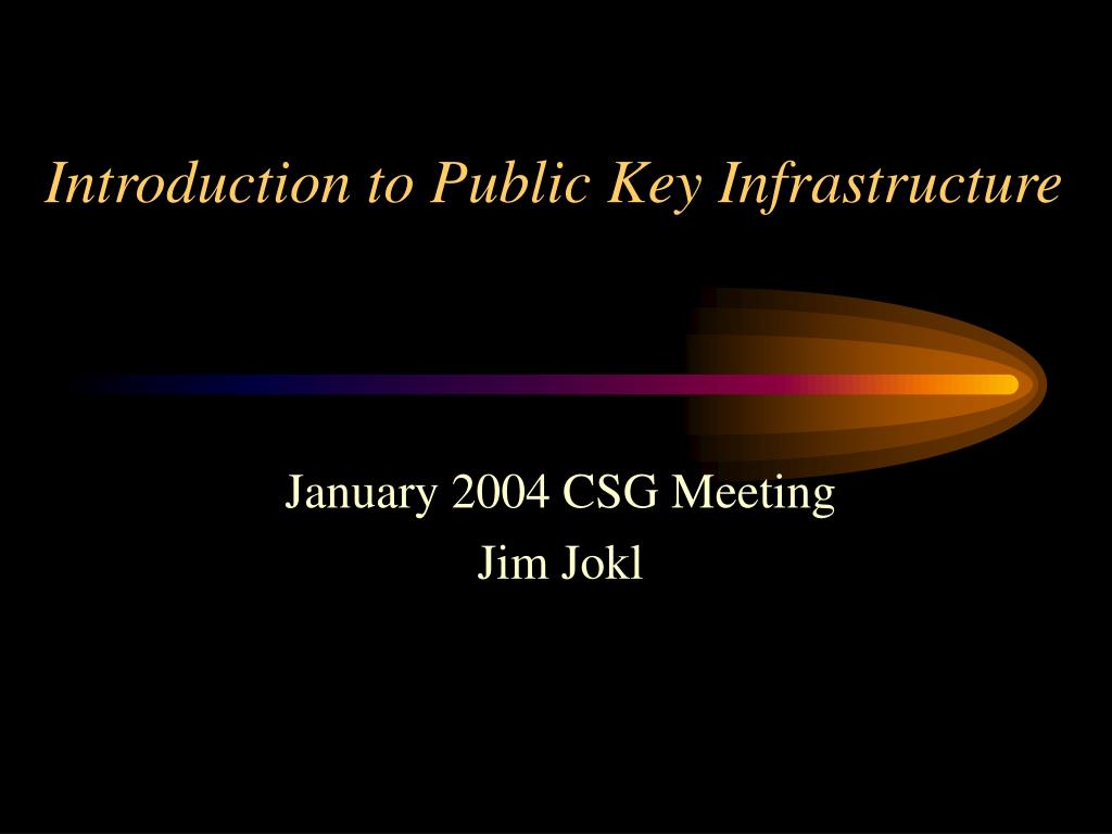 Introduction to Public Key Infrastructure January 2004 CSG Meeting Jim Jokl