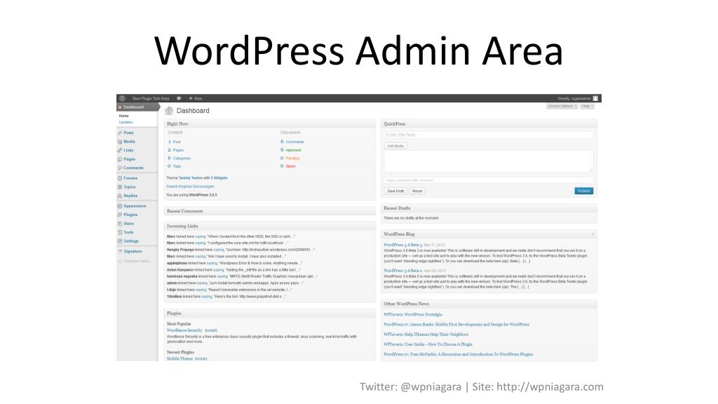 WordPress Admin Area Twitter: @wpniagara | Site: http://wpniagara.com
