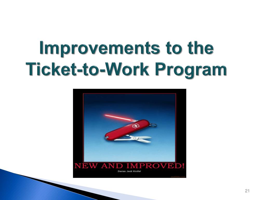 In 2008, SSA made several improvements to the Ticket to Work employment program to increase participation. Today you will learn about these improvements and……. Ticket to Work program basics New payment structure How Partnership Plus works Next Steps to becoming an Employment Network 14