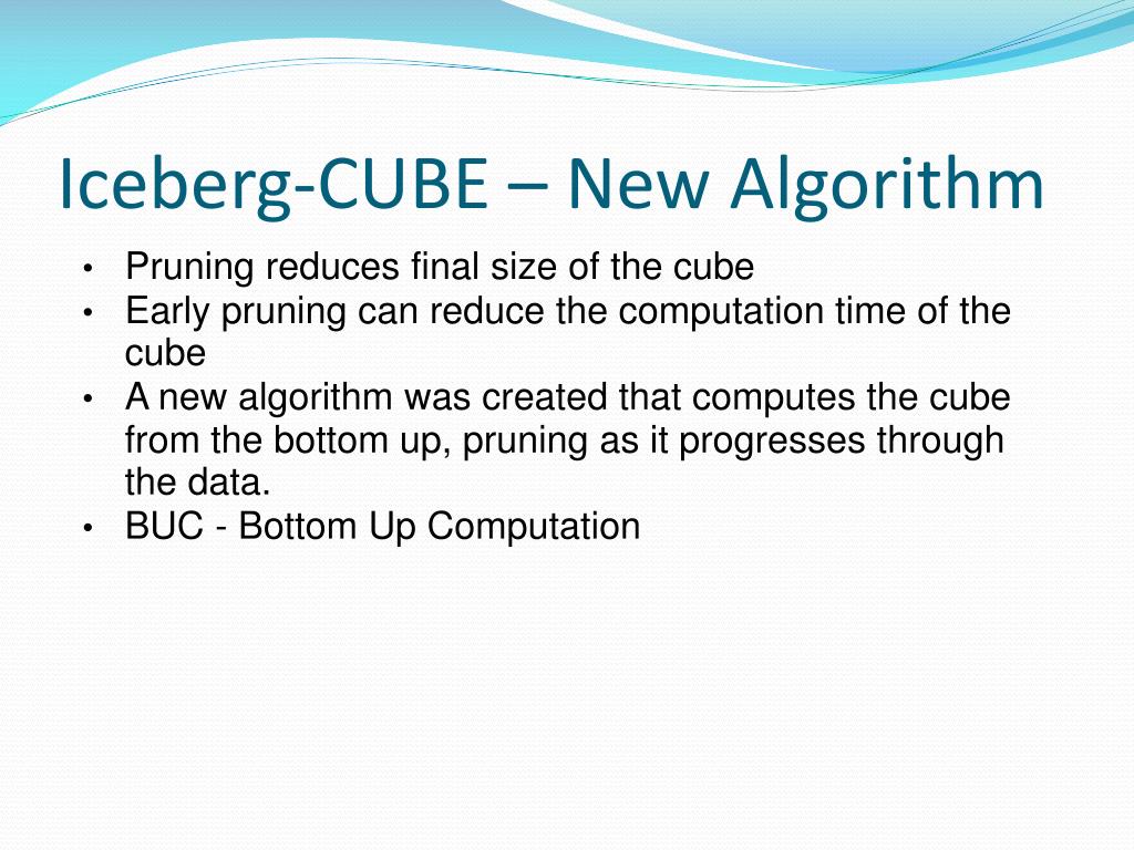 Iceberg-CUBE – How will we use it • This paper goes into some detail about how to implement Iceberg-CUBE. We plan to implement this algorithm and demonstrate how it may be 'parallelized'.