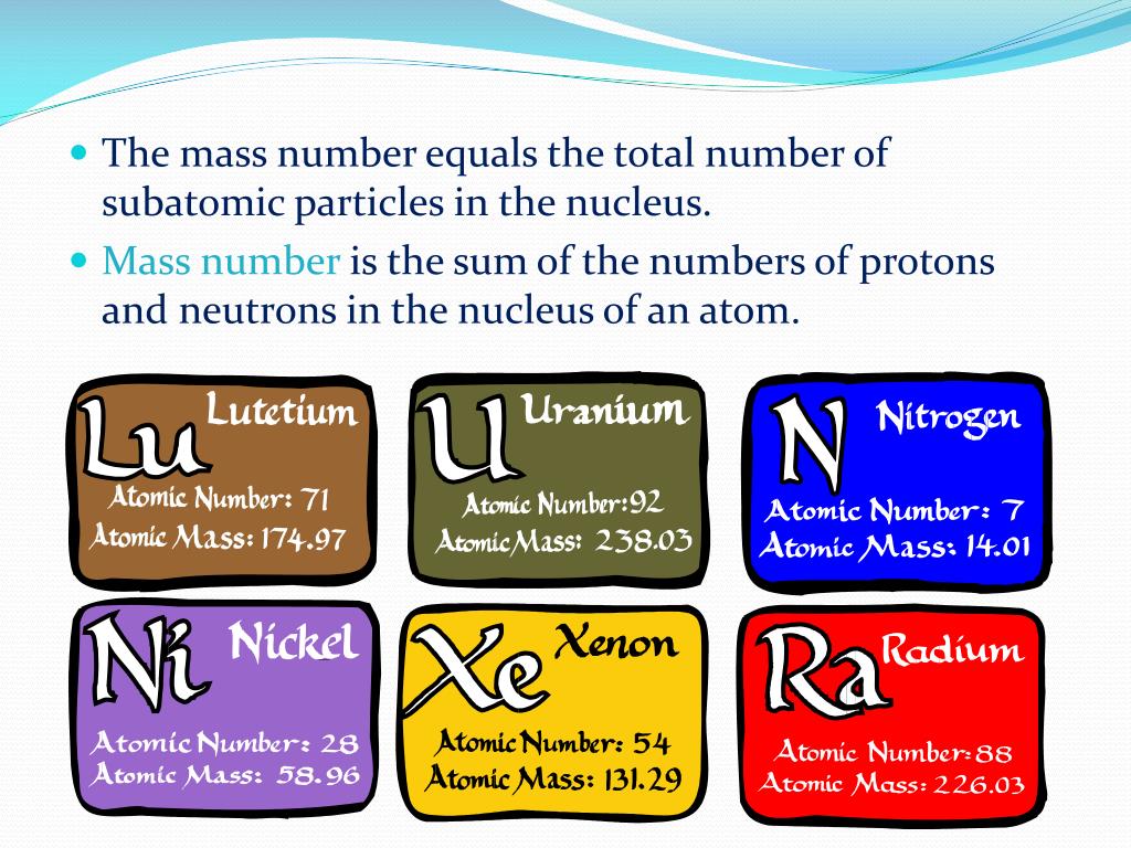 The number of neutrons can be calculated. • If you know the atomic number and the mass number you can calculate the number of neutrons an atom has. • You take the mass number and subtract the atomic number and this leaves you with the number of neutrons. • Let’s look in out book on page 124.