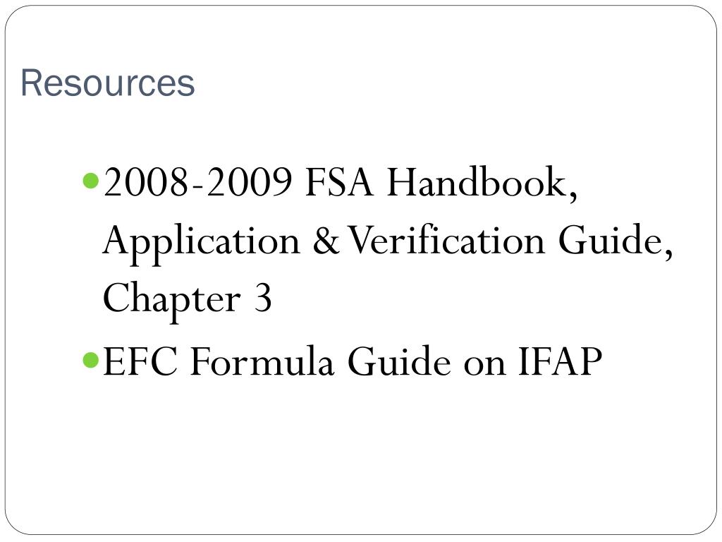 Resources • 2008-2009 FSA Handbook, Application & Verification Guide, Chapter 3 • EFC Formula Guide on IFAP
