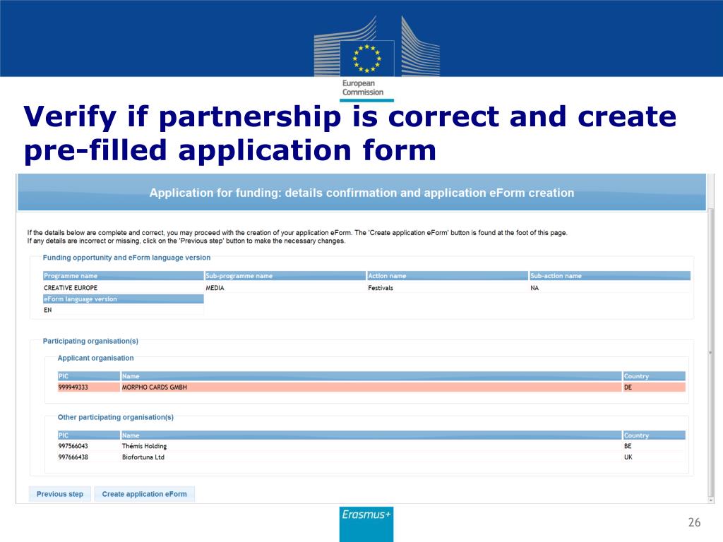 Verify if partnership is correct and create pre-filled application form