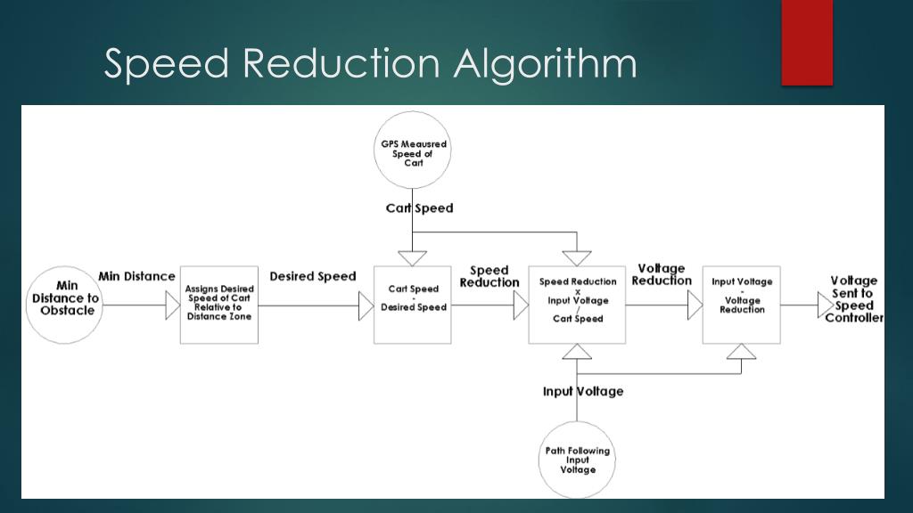 Acceleration System Block Diagram • Pre-autonomous mode: • Binary signals for direction and enable come from cart • The analog signal for speed is sent from the potentiometer wiper arm on the pedal to the speed controller • Normally open switches