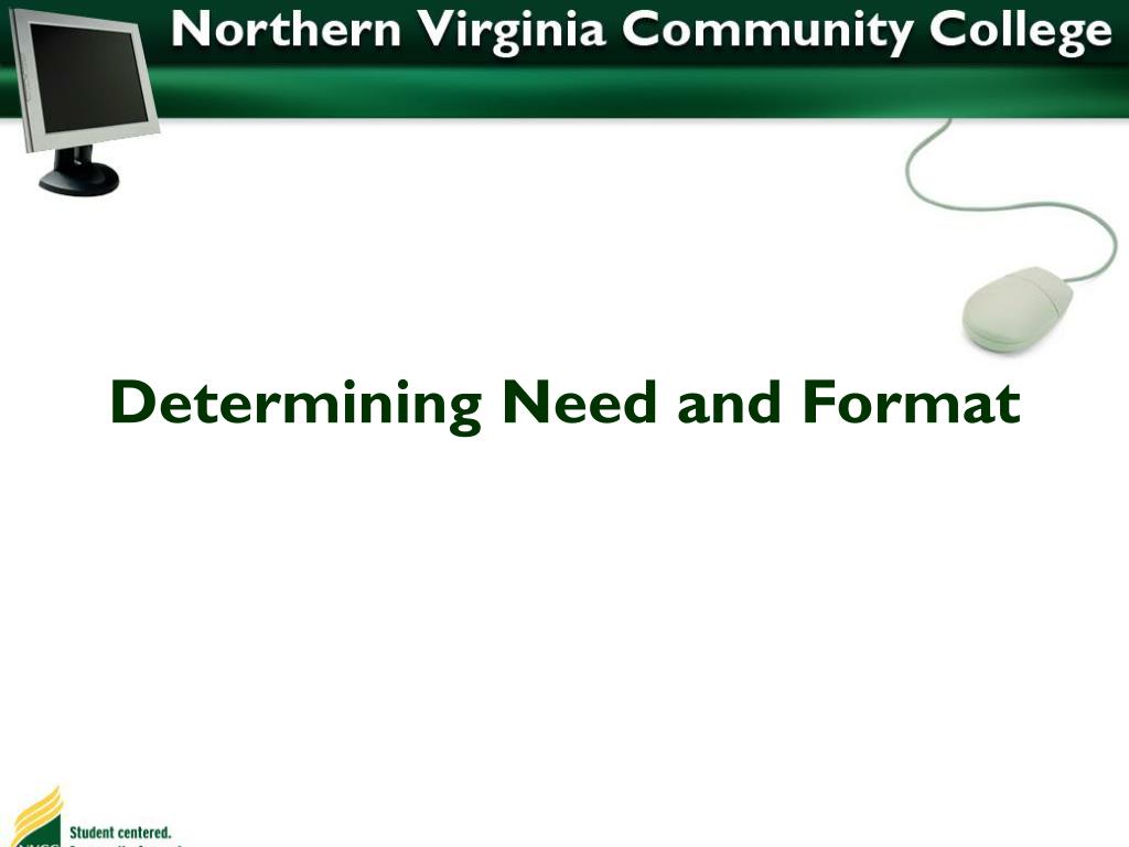 About NVCC • Largest community college of 23 in Virginia Community College System – 6 campuses • Located in the Washington, D.C. suburbs • 59,500 credit students annually (unduplicated) • 24,500 non-credit students annually (unduplicated) • 5,500 students in distance learning courses • 345 distance learning courses offered • 292 hybrid courses offered currently