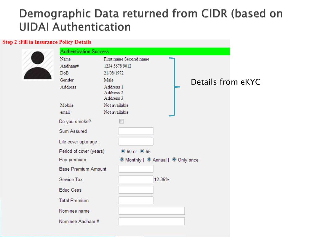 Demographic Data returned from CIDR (based on UIDAI Authentication Details from eKYC