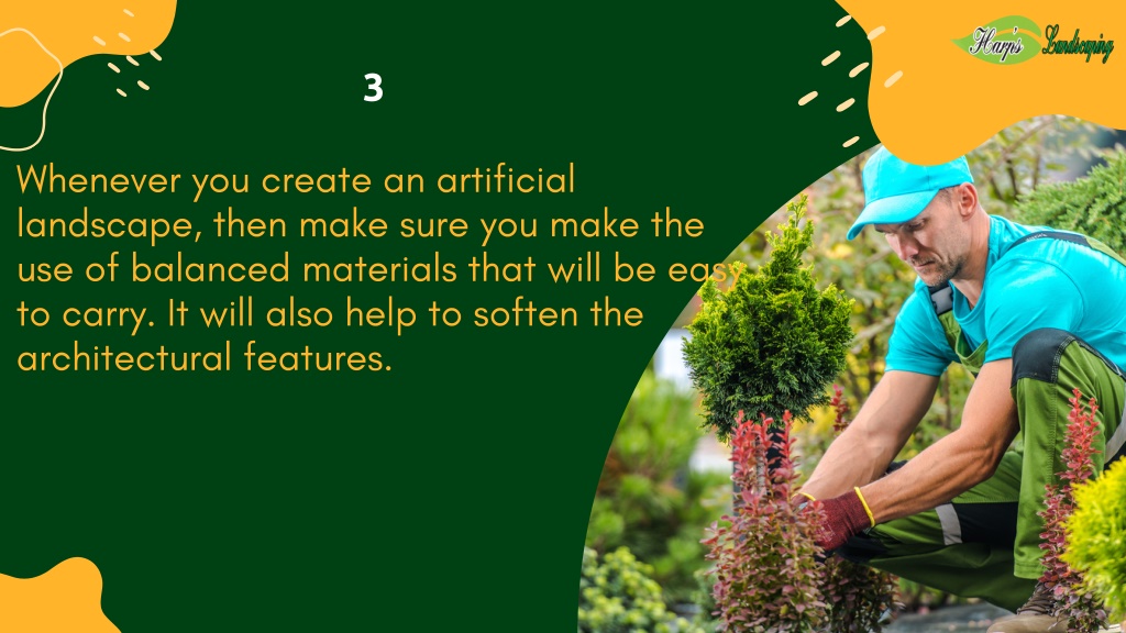 3 Whenever you create an artificial landscape, then make sure you make the use of balanced materials that will be easy to carry. It will also help to soften the architectural features.