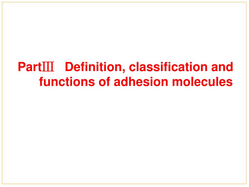 Ⅱ. Classification • Integrin family • Selectin family • Immunoglobulin (Ig) superfamily • Cadherin family • Mucin-like family • Other adhesion molecules