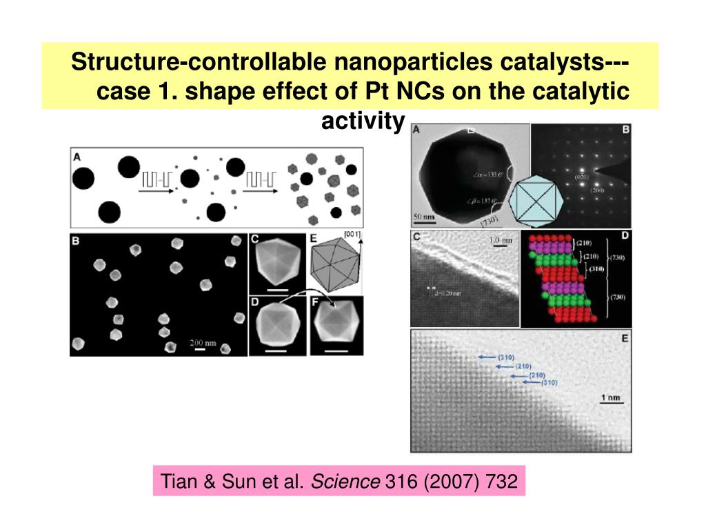 Structure-controllable nanoparticles catalysts---case 1. shape effect of Pt NCs on the catalytic activity Tian & Sun et al. Science 316 (2007) 732