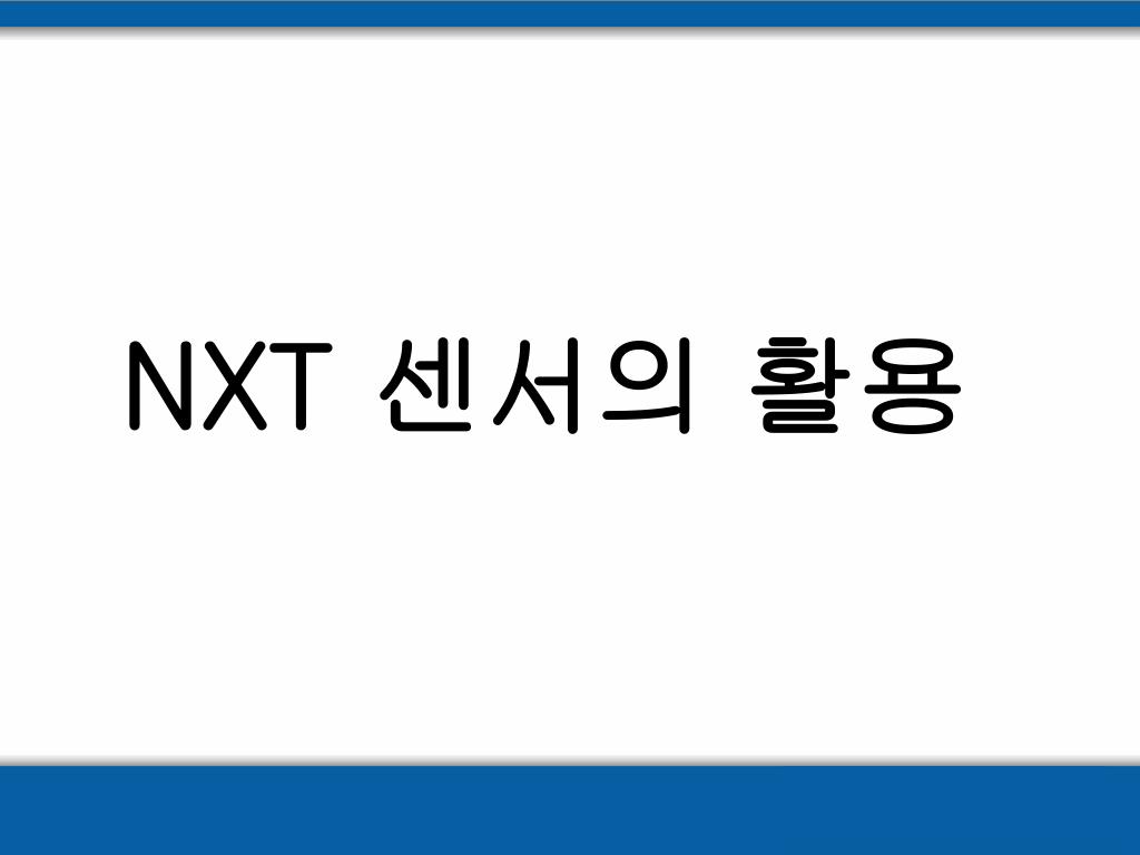 NXT에 활용되는 센서들 터치센서 (눌림측정) 초음파센서 (거리측정) 라이트센서 (광량측정) 모터 (회전량측정) 사운드센서 (음량측정)