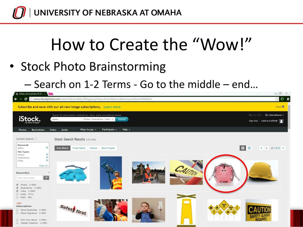How to Create the “Wow!” • Stock Photo Brainstorming • Search on 1-2 Terms - Go to the middle – end…