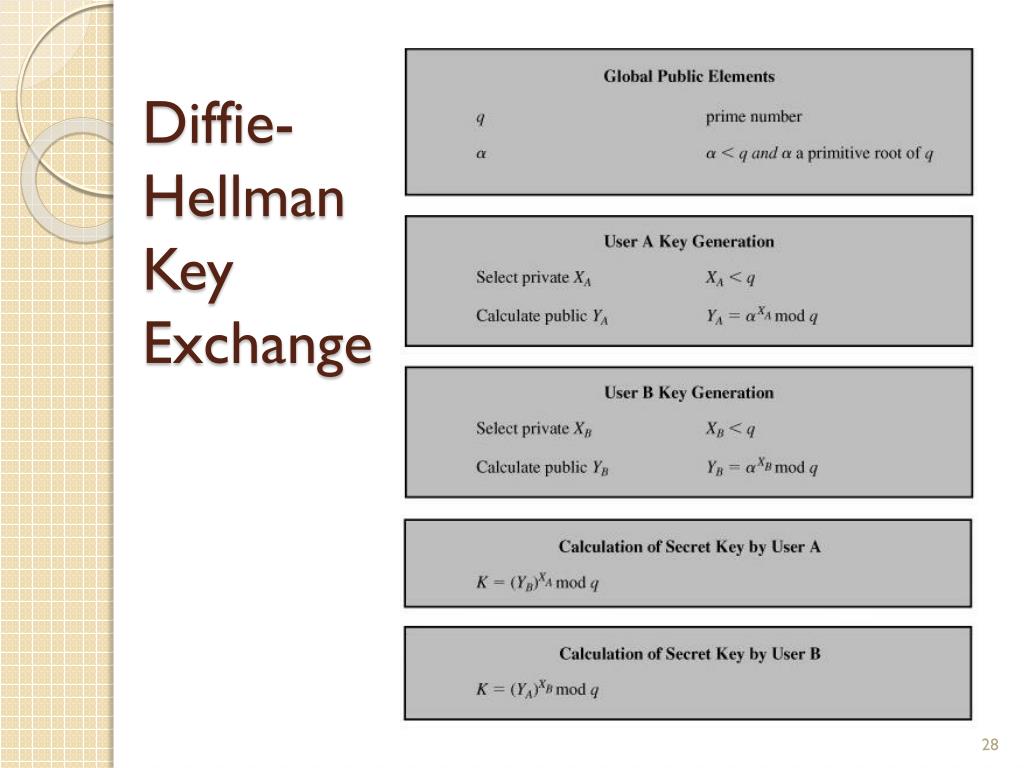 Why Is Diffie-Hellman Secure? • It is difficult to compute discrete logarithm: knowing g and gx, it is difficult to compute x
