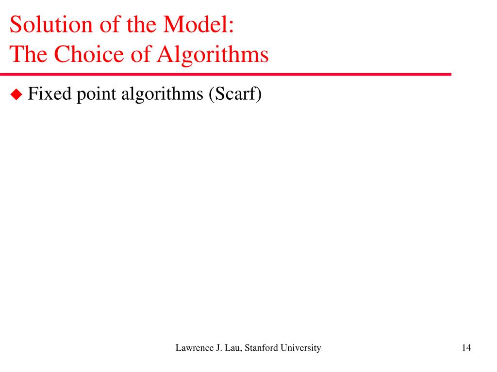 Solution of the Model:The Choice of Algorithms • Fixed point algorithms (Scarf) Lawrence J. Lau, Stanford University