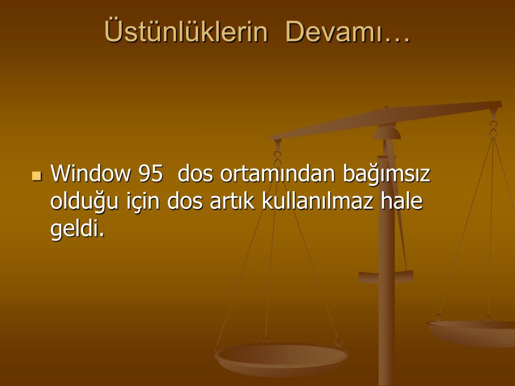 Üstünlüklerin Devamı… • Window 95 dos ortamından bağımsız olduğu için dos artık kullanılmaz hale geldi.