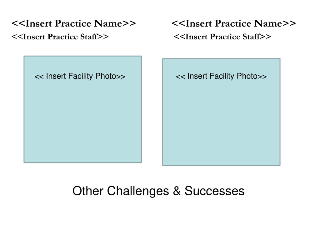 <<Insert Practice Name>> <<Insert Practice Name>> <<Insert Practice Staff>> <<Insert Practice Staff>> << Insert Facility Photo>> << Insert Facility Photo>> Other Challenges & Successes