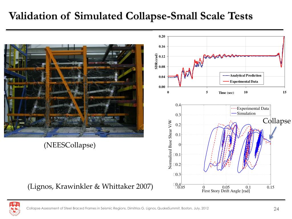 Motivation In the context of Performance-Based Earthquake Engineering, collapse constitutes a limit state associated with complete loss of a building and its content. Understanding collapse is a fundamental objective in seismic safety since this failure mode is associated with loss of lives. Therefore, there is a need for reliable prediction of the various collapse mechanisms of buildings subjected to earthquakes. Dimitrios G. Lignos Quake Summit, San Francisco 2010