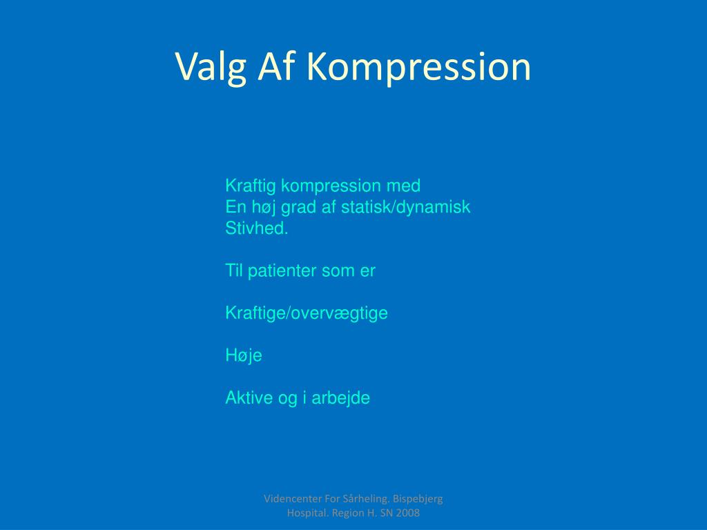 Valg Af Kompression Selv med kortstræk kan det gå meget galt. Skal kompressions behandling være en specialist opgave? Videncenter For Sårheling. Bispebjerg Hospital. Region H. SN 2008