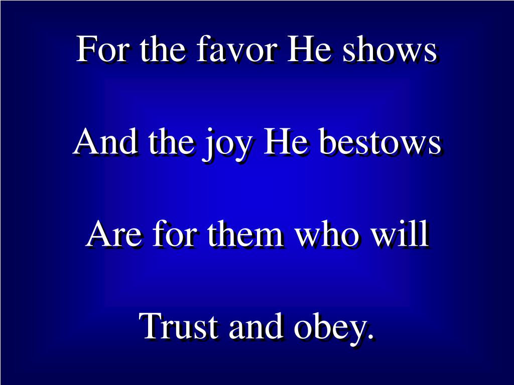 For the favor He shows And the joy He bestows Are for them who will Trust and obey.