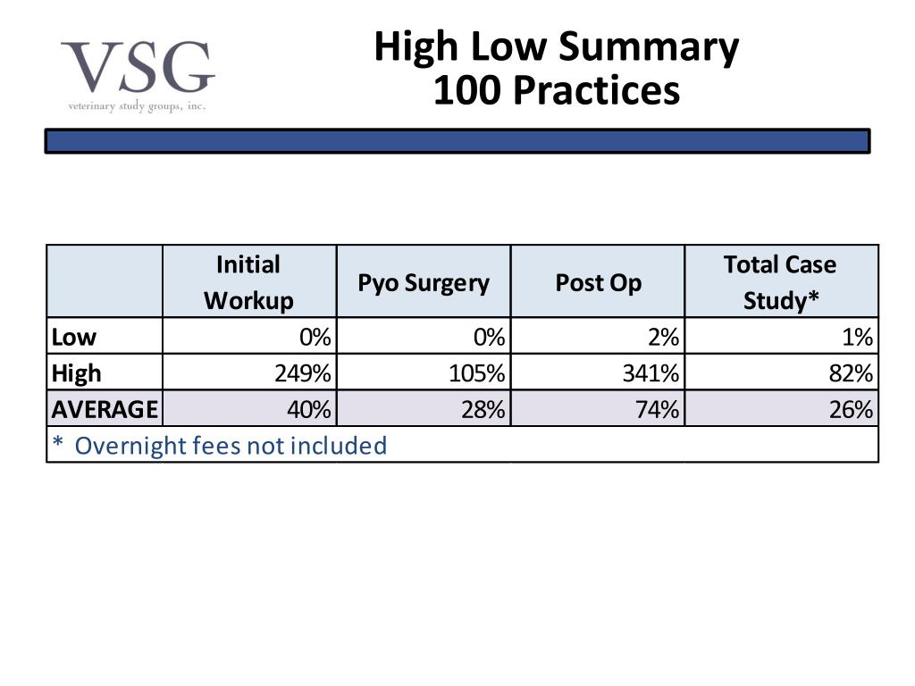 Pyo Case Total Fees Invoiced Average of the last 100 VMG practices: 26% difference high to low total fees within practice Differences range from 1% to 82% difference “Disparity Gap”