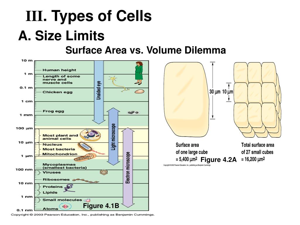 III. Types of Cells A. Size Limits Surface Area vs. Volume Dilemma Figure 4.2A Figure 4.1B
