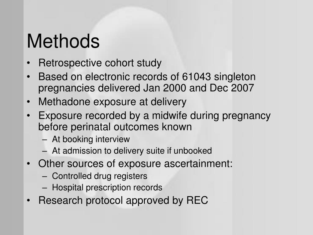 Methadone Maintenance Treatment During Pregnancy and Perinatal Outcomes. Cleary BJ 1,2,3 ; DONNELLY JM 2 ; STRAWBRIDGE JD 3 ; GALLAGHER PJ 3 ; FAHEY T 4 ; WHITE MJ 2 ; MURPHY DJ 1,2 1 Department of Obstetrics and Gynaecology, Trinity College Dublin