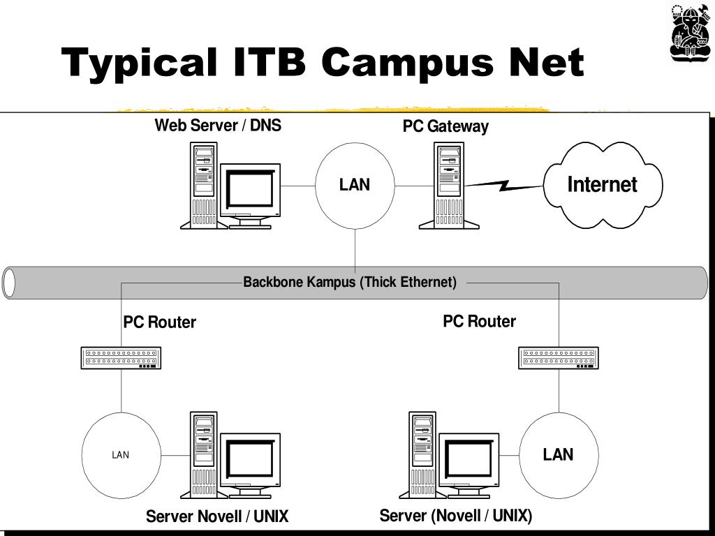 ITB in 1995 • Telkom Leased Line at 14.4Kbps • RISTI-Telkom to BPPT 64Kbps. • ITB uses FreeBSD (UNIX) as Router & Server. • For the first time ITB sees Web in Internet. • ITB learns to build a campus network (how to handle the lightning).