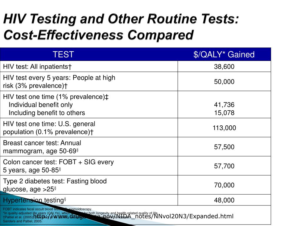 HIV Testing and Other Routine Tests:Cost-Effectiveness Compared http://www.drugabuse.gov/NIDA_notes/NNvol20N3/Expanded.html