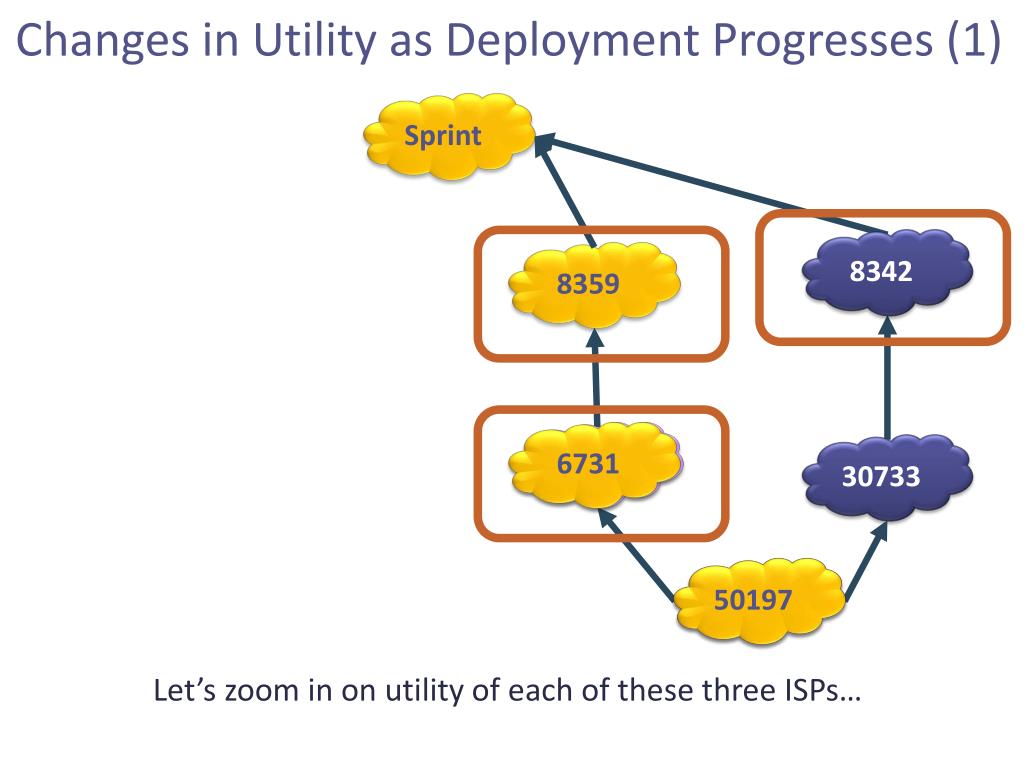 Changes in Utility as Deployment Progresses (1) Sprint Let’s zoom in on utility of each of these three ISPs… 8342 8359 6731 6731 30733 50197 50197