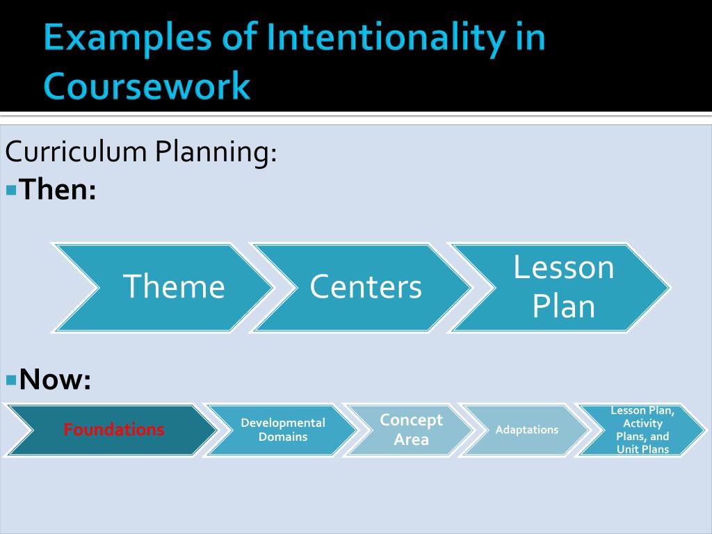 Examples of Intentionality in Coursework Curriculum Planning: • Then: • Now: