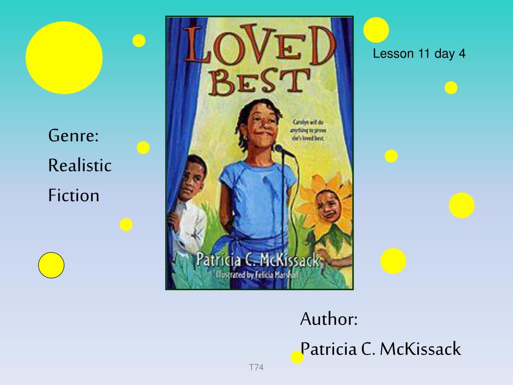 Lesson 11 day 4 Genre: Realistic Fiction Author: Patricia C. McKissack T74