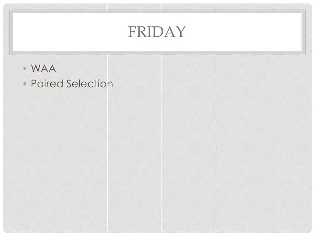 Friday • WAA • Paired Selection