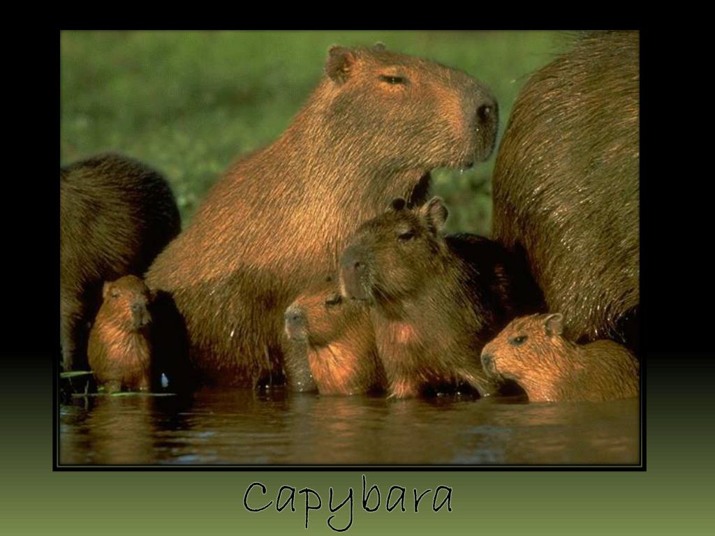 Rainforest Animals. Scarlet Macaw. Toucan. Green Crowned Brilliant Hummingbird. Vampire Bat. Howler Monkeys. Spider Monkey. Poison Dart Frog. Capybara. Brazilian tapir. Leafcutter A nts. Giant Anteater. Ocelot. Panther. Jaguar. Amazon River Dolphin. Manatee. Piranha!.