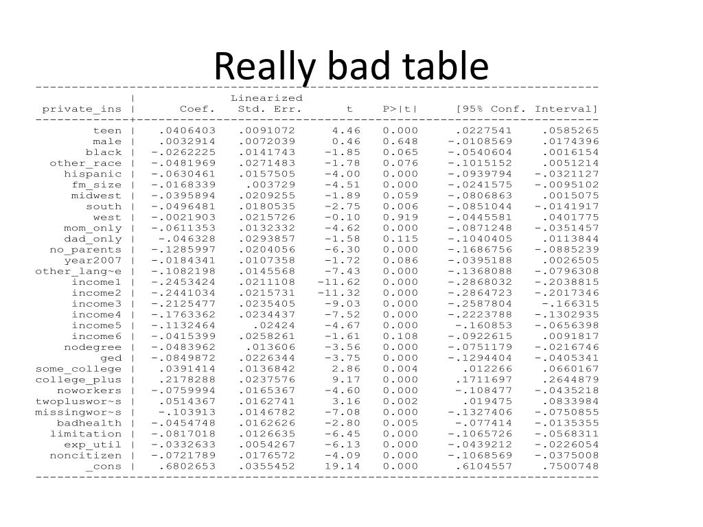 This is too much – it looks crowded • Use of contemporary data is problematic because many factors are correlated with housing segregation along with distance to medical facilities • It is better to examine a historical “natural experiment” • Racial integration of hospitals in the American South in the 1960s • Integration was mandated by the federal government as a condition of accepting Medicare funding • Chay, Almond and Greenstone (2007) show that hospital integration lowered the black-white infant mortality gap in Mississippi