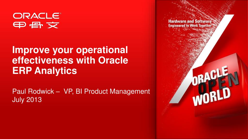 Improve your operational effectiveness with Oracle ERP Analytics Paul Rodwick – VP, BI Product Management July 2013