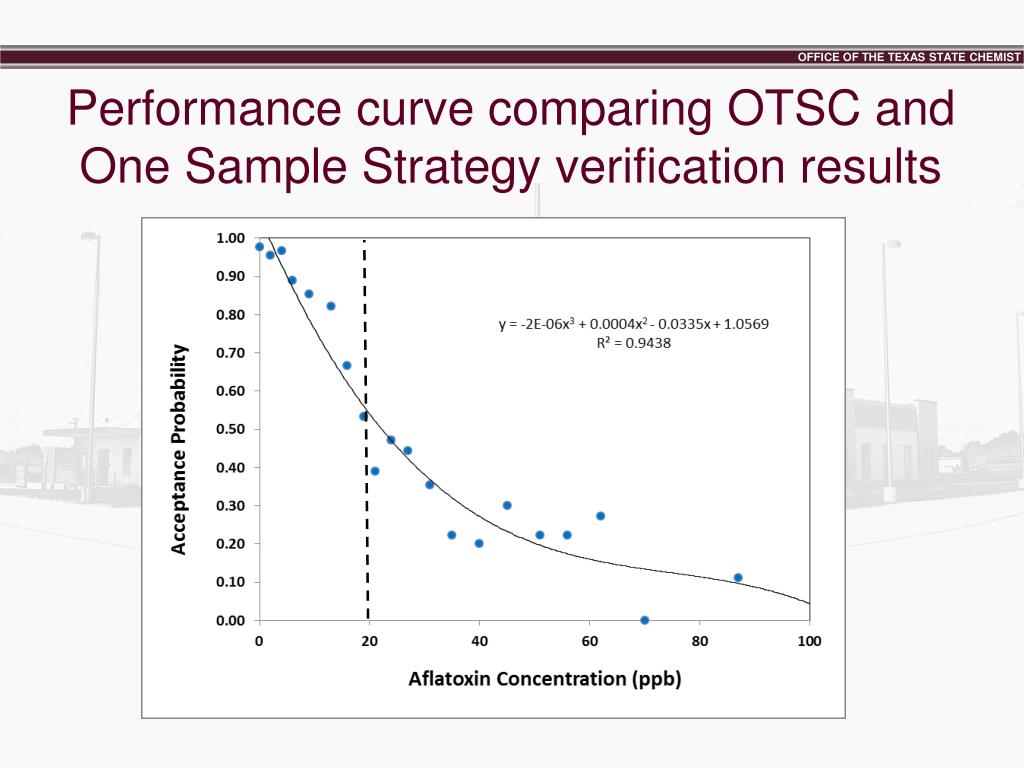 Outline • Statistically derived risk-based plan of work • A good utilization of resources • Co-Regulation of aflatoxin risk as a preventive control • Greatly improved aflatoxin testing accuracy in the regulated community and increased confidence • Risk Assessment of the FDA blending waiver • A predictable level of milk contamination in Texas occurred in 2012 from Midwest corn • Policy Considerations • FDA should make permanent and nationwide the blending of 0 to 500 ppb aflatoxin contaminated corn • Use of aflatoxin binders