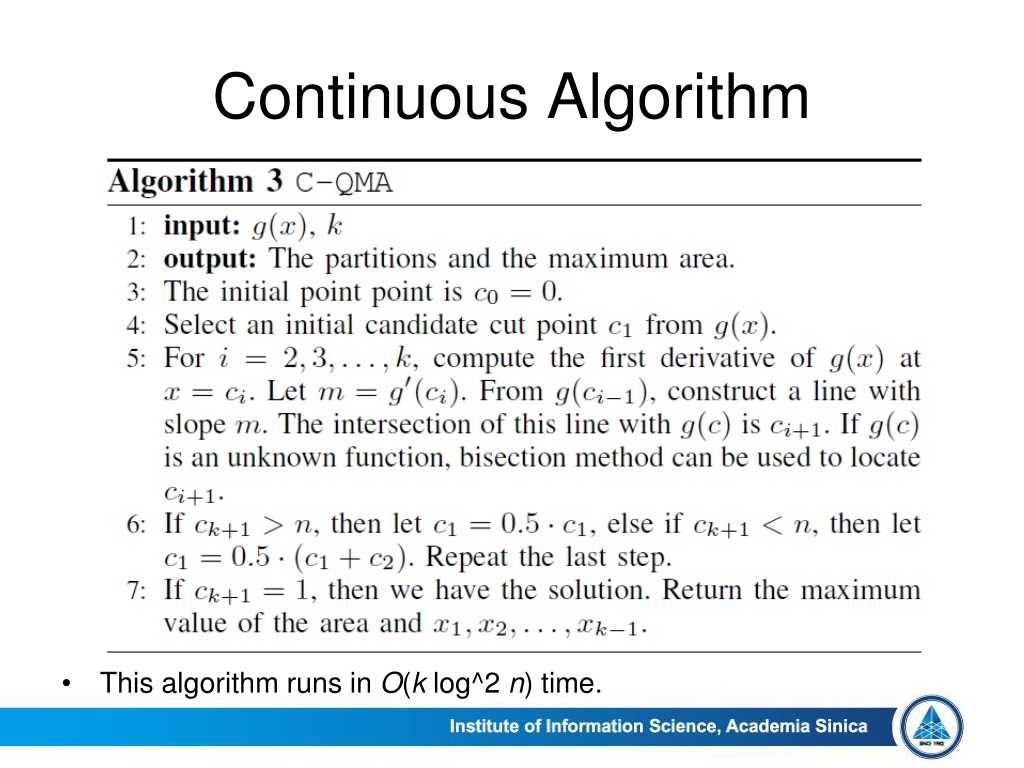 Continuous Algorithm • This algorithm runs in O(k log^2 n) time.
