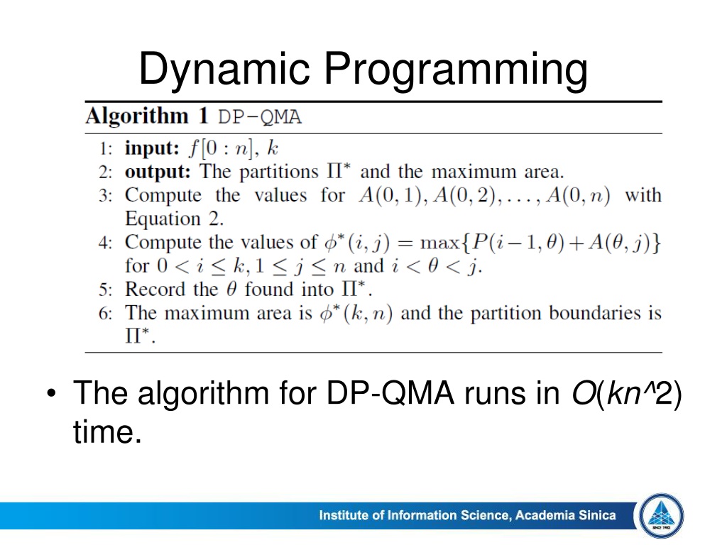 Dynamic Programming • The algorithm for DP-QMA runs in O(kn^2) time.