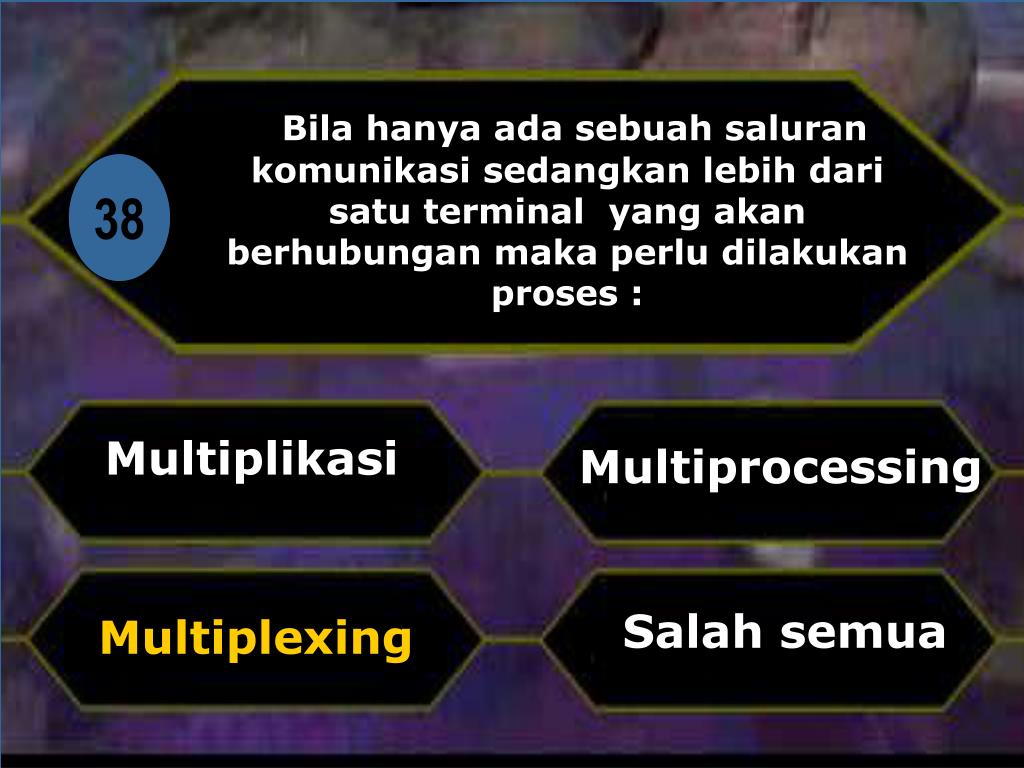 Bila hanya ada sebuah saluran komunikasi sedangkan lebih dari satu terminal yang akan berhubungan maka perlu dilakukan proses : Di 38 Multiplikasi Multiprocessing Salah semua Multiplexing