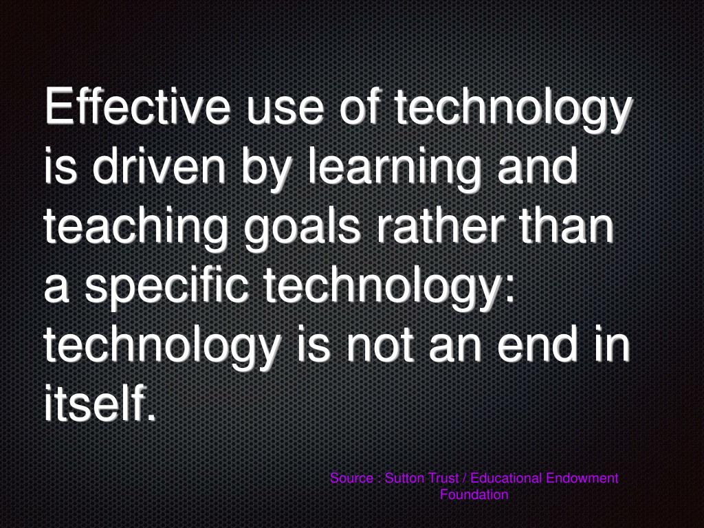 Effective use of technology is driven by learning and teaching goals rather than a specific technology: technology is not an end in itself. Source : Sutton Trust / Educational Endowment Foundation