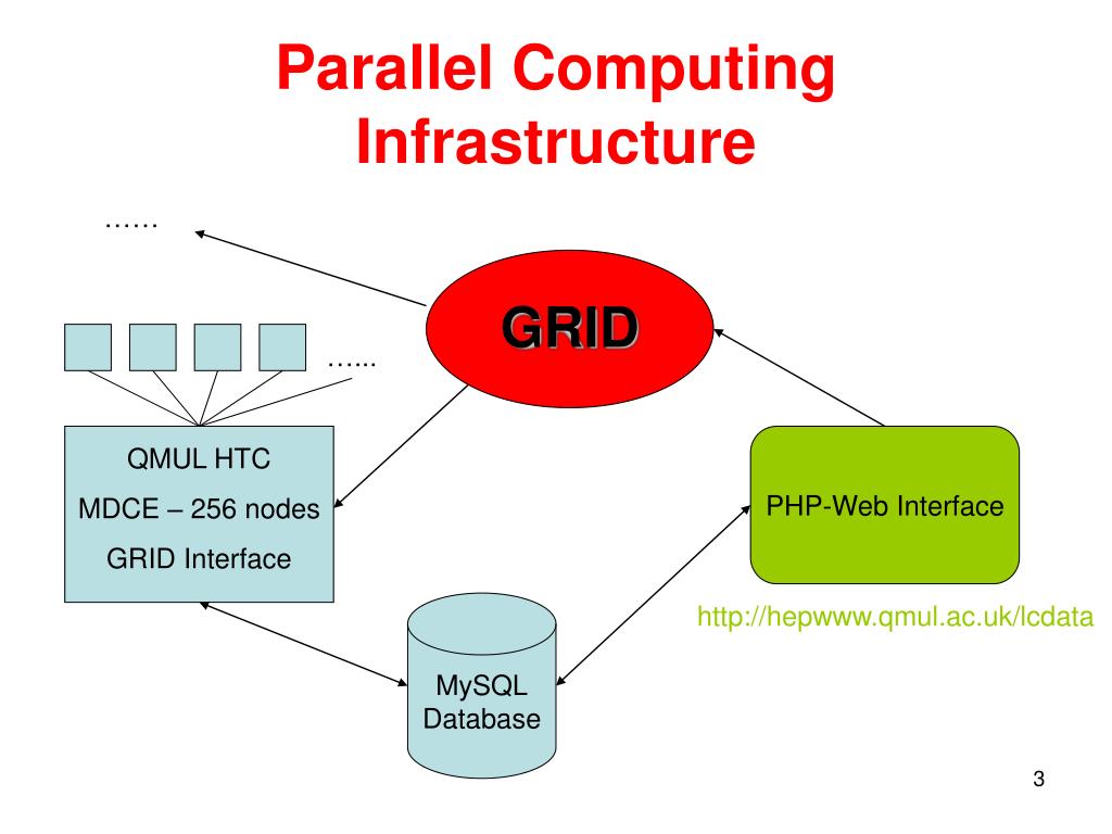 …... QMUL HTC MDCE – 256 nodes GRID Interface GRID Parallel Computing Infrastructure …… PHP-Web Interface MySQL Database http://hepwww.qmul.ac.uk/lcdata