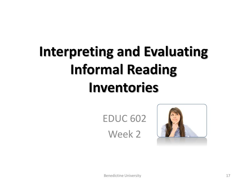 Interpreting and Evaluating Informal Reading Inventories EDUC 602 Week 2 Benedictine University